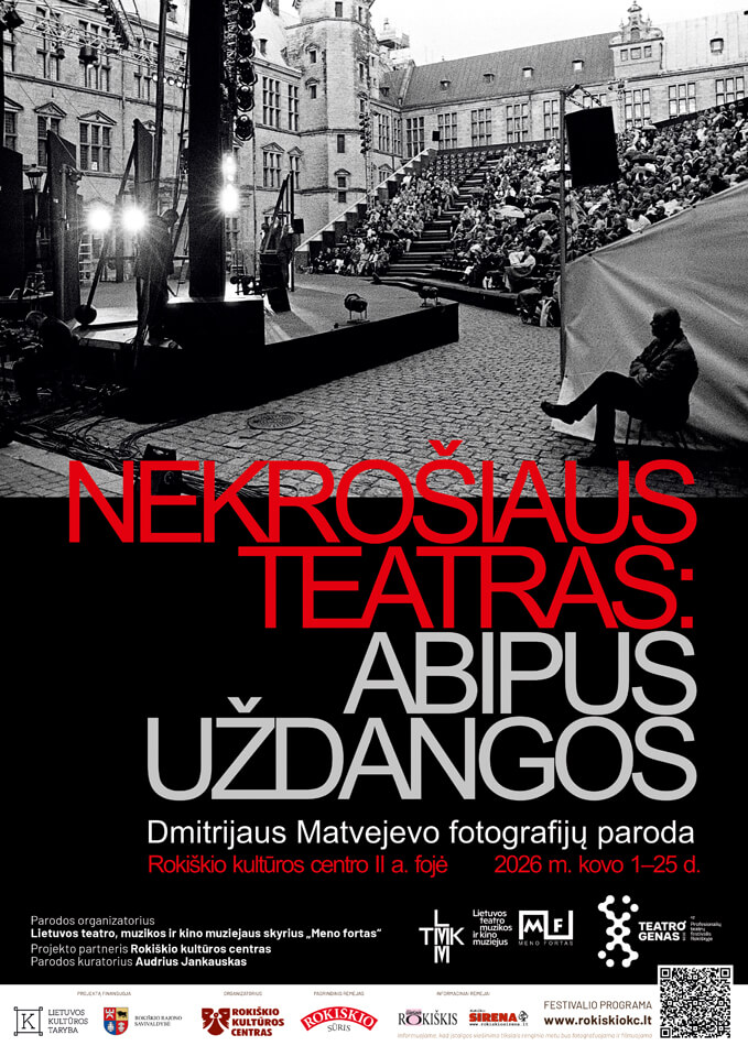 Dmitrijaus Matvejevo fotografijų Nekrošiaus teatro tema paroda, pavadinta „Nekrošiaus teatras: abipus uždangos“. Čia atrandame ir matytų, jau ne kartą įvairiais pavidalais patekusių į knygas, afišas, straipsnius, ir visai nematytų nuotraukų. Tos nematytos - tai išgriebtos akimirkos iš spektaklių, režisieriaus repeticijų su aktoriais ir jo paties. Vienoje iš jų matome tik tamsų režisieriaus pakaušį ir prieš jį atsiveriančią tuščią tamsos ir šviesos gaubiamą erdvę, sceną, kurią dar reikės užpildyti... Didelį įspūdį man paliko ir nuotraukos iš Elsinoro pilies, šventų švenčiausios vietos Šekspyro gerbėjams, kur 2001-aisiais buvo vaidintas Nekrošiaus „Hamletas“: vaidinimo akimirkos, žvilgsnis į užkulisius ir iš jų, repeticija, pertrauka, kai trumpam atsipalaiduojama, amfiteatras su žiūrovais. Matvejevo fotografijos kupinos teatro atmosferos, jos perteikia režisieriaus sumanymus, draminio veiksmo kulminacijas, leidžia spektaklio epizodus pamatyti iš arti, pajusti emocines iškrovas, priartina prie mūsų aktorius - po kelis kartus Smoriginas, Mamontovas, Bagdonas, Petkevičius, Storyk, Kuodytė, Budrys ir daugybė kitų, kartais net nespėtų „įamžinti“ kritikų. Tuo įdomiau, nes spektakliuose ne kartą yra vaidinę neprofesionalai, kuriems režisierius dėl vienos ar kitos priežasties patikėdavo vaidmenis.