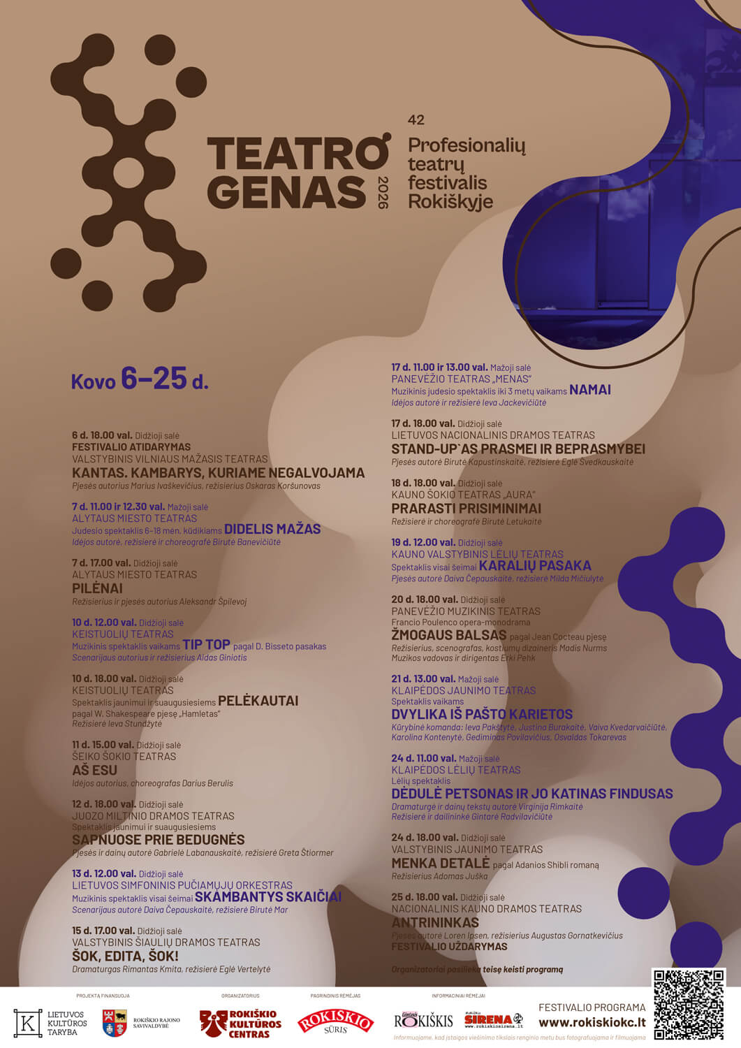 Projektą „42-asis profesionalių teatrų festivalis Rokiškyje TEATRO GENAS“ finansuoja Lietuvos kultūros taryba ir Rokiškio rajono savivaldybė