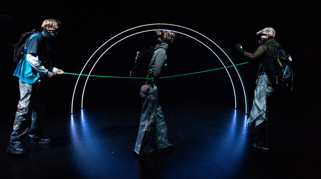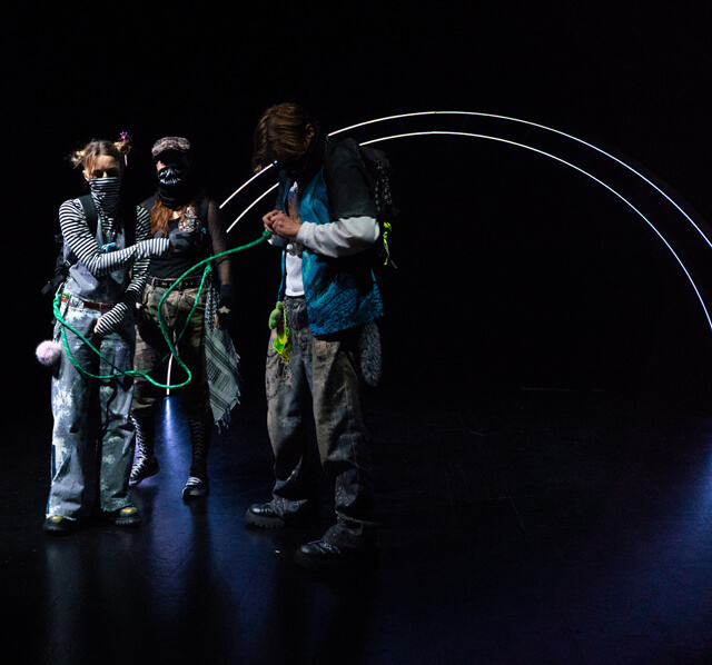 Spektaklis „Sapnuose prie bedugnės“ kviečia pasinerti į keturių paauglių sapnų, žaidimų ir vidinių pasaulių kelionę. Gaja, Sky ir Mono leidžiasi ieškoti iš namų pabėgusio draugo Neo, kuris, pasirodo, įstrigo žaidime „Bedugnė“. Tačiau ši bedugnė – ne tik žaidimas. Ji tampa asmenine psichologine erdve, kurioje iškyla praeities šešėliai, o veikėjai turi daug tapatybių, virstančių nenuspėjamais avatarais.