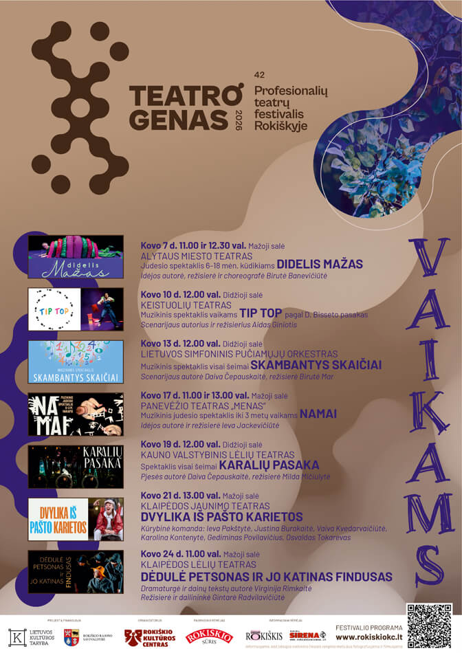 Projektą „42-asis profesionalių teatrų festivalis Rokiškyje TEATRO GENAS“ finansuoja Lietuvos kultūros taryba ir Rokiškio rajono savivaldybė